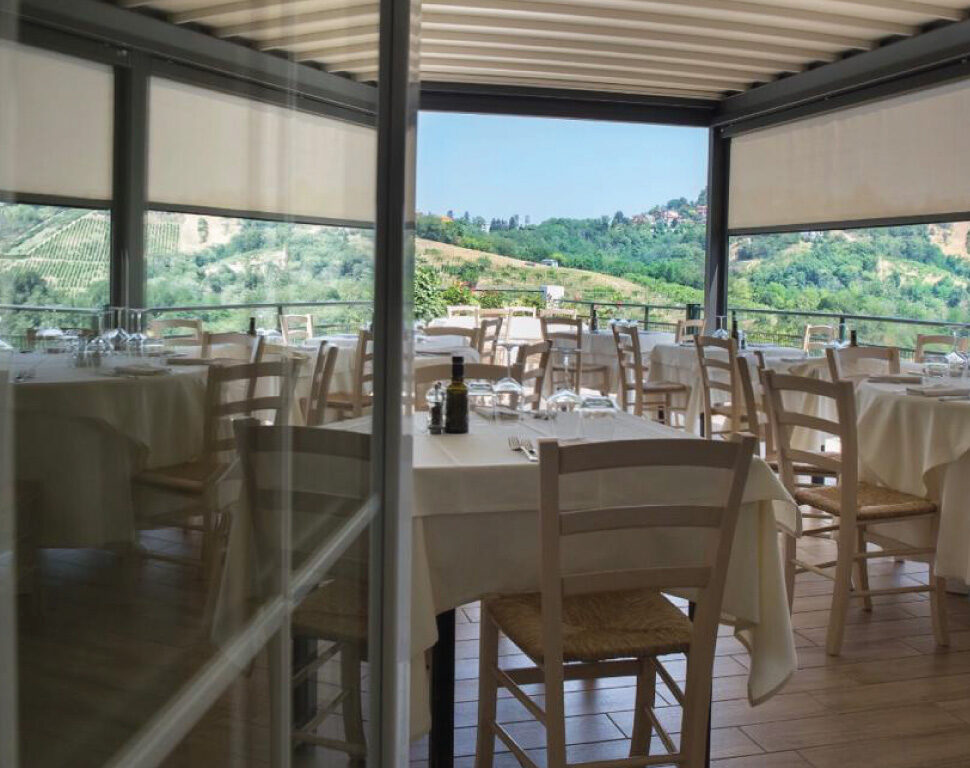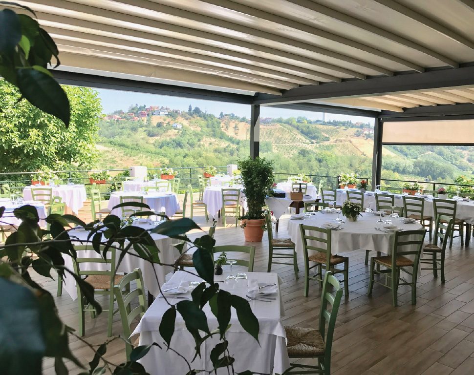 Le sale sono ampie e luminose, accoglienti, ricche di storia e tradizione. Nelle belle giornate potrete pranzare o cenare nella splendida terrazza con vista sulle colline di Canneto Pavese.